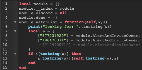 Afterwards, when a player joins i send the players id to the modulescript so that it can know if the player is in the watchlist: