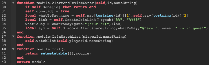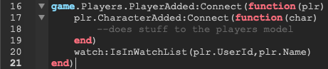 Afterwards, when a player joins i send the players id to the modulescript so that it can know if the player is in the watchlist: